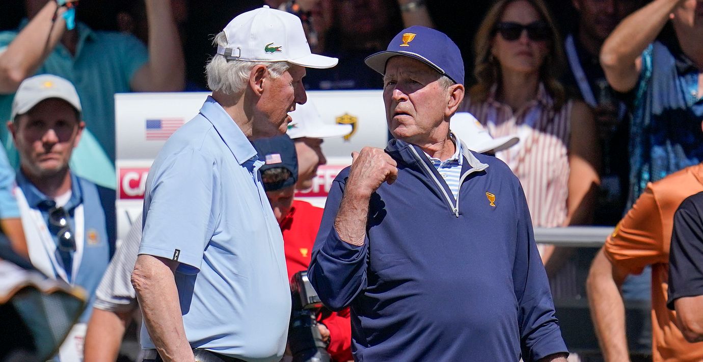Ex-presidenterna Bill Clinton och George W Bush under en golfturnering i North Carolina, 2022. (Julio Cortez / AP)