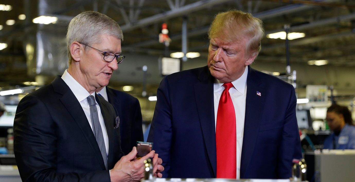 President Donald Trump guidas av Tim Cook på en Applefabrik i Austin, 2019. (Evan Vucci / AP)