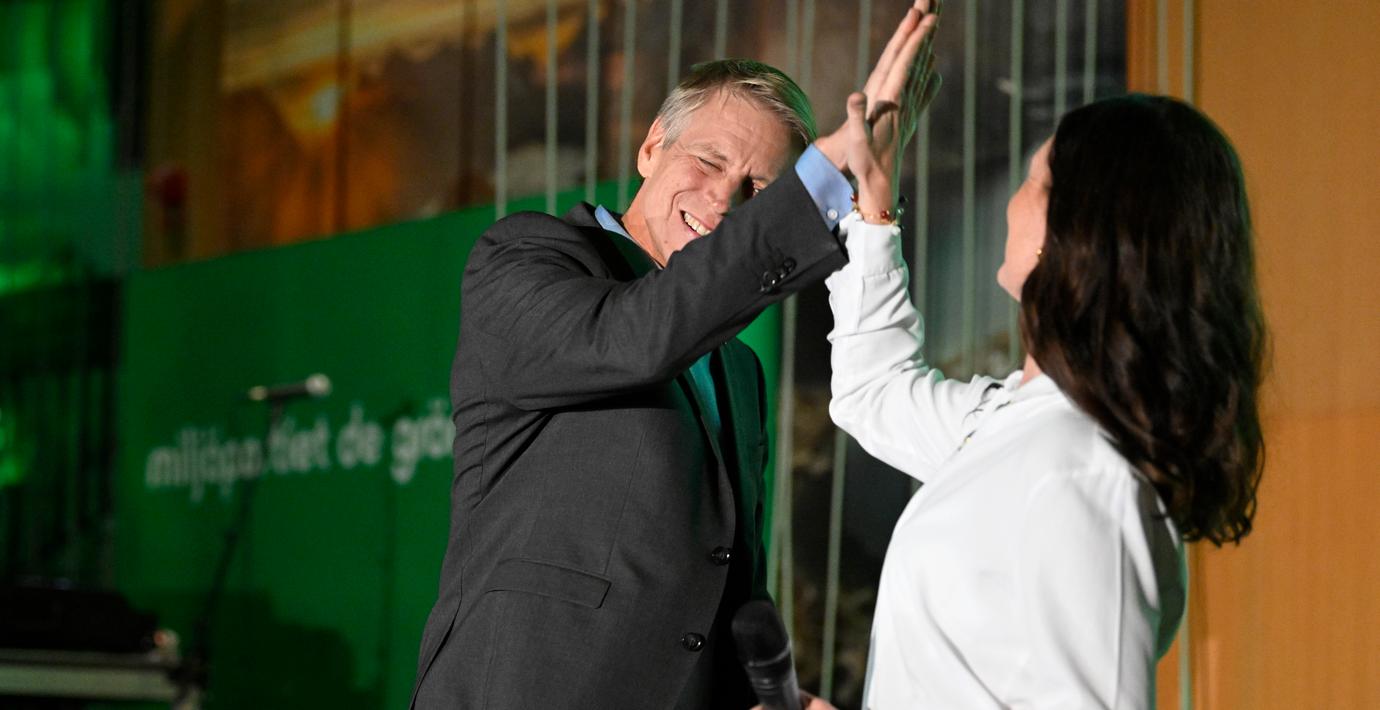 De preliminära siffrorna tyder på att MP klarar riksdagsspärren, vilket möttes av högljutt jubel på valvakan.