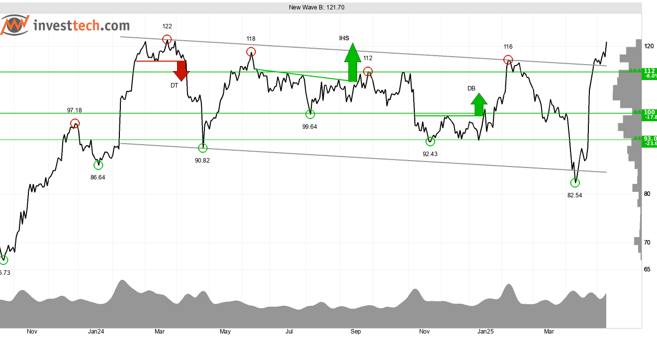 New Wave B som är verksamma inom detaljhandelsbranschen ser just nu ut som ett starkt investeringscase från ett tekniskt och kvantitativt perspektiv. Investtechs algoritmer har identifierat en horisontell trendkanal på kursdiagrammet för medellång sikt där kursen nyligen har brutit upp genom taket på trendkanalen. En horisontell trend indikerar att marknaden är i balans. När kursen bryter upp är det ett tecken på ökad efterfrågan och att det finns ett överskott av köpare. Det signalerar ökande optimism bland investerare och indikerar fortsatt kursuppgång enligt Investtechs forskningsresultat.