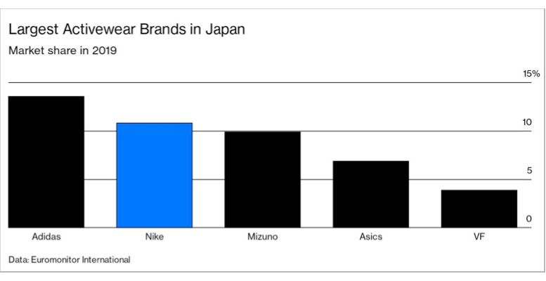 Nike is still one of the most popular sportswear brands in Japan, behind Adidas and ahead of homegrown Mizuno, according to Euromonitor International, and its products are especially hot with younger customers. But they may not be as liberal as their U.S. counterparts: Outgoing U.S. President Donald Trump, a Kaepernick critic, is more popular with younger Japanese than with their parents, according to the Social Survey Research Center in Japan.