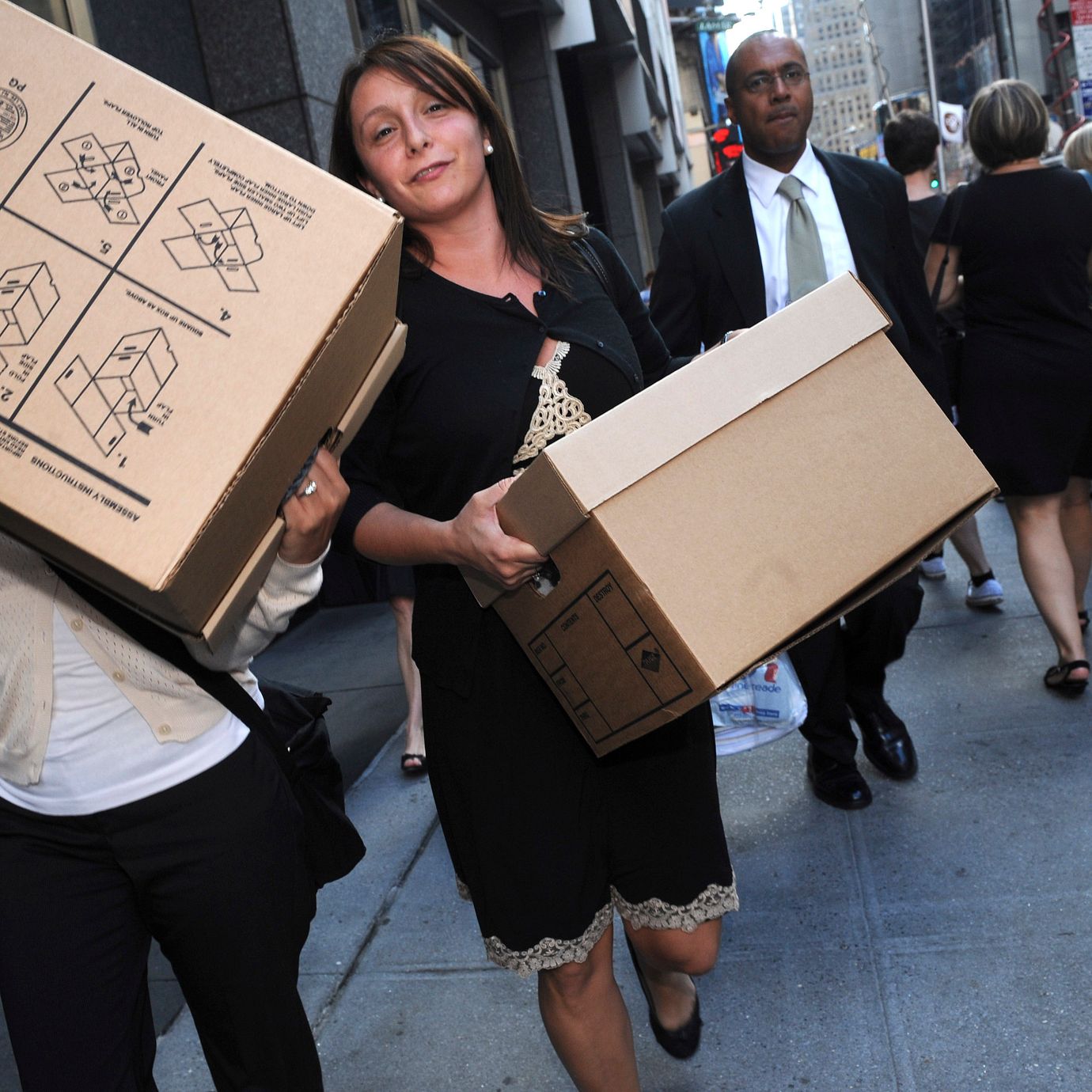 Anställda lämnar Lehman Brothers när den 158 år gamla investmentbanken faller i september 2008. (Louis Lanzano / AP)
