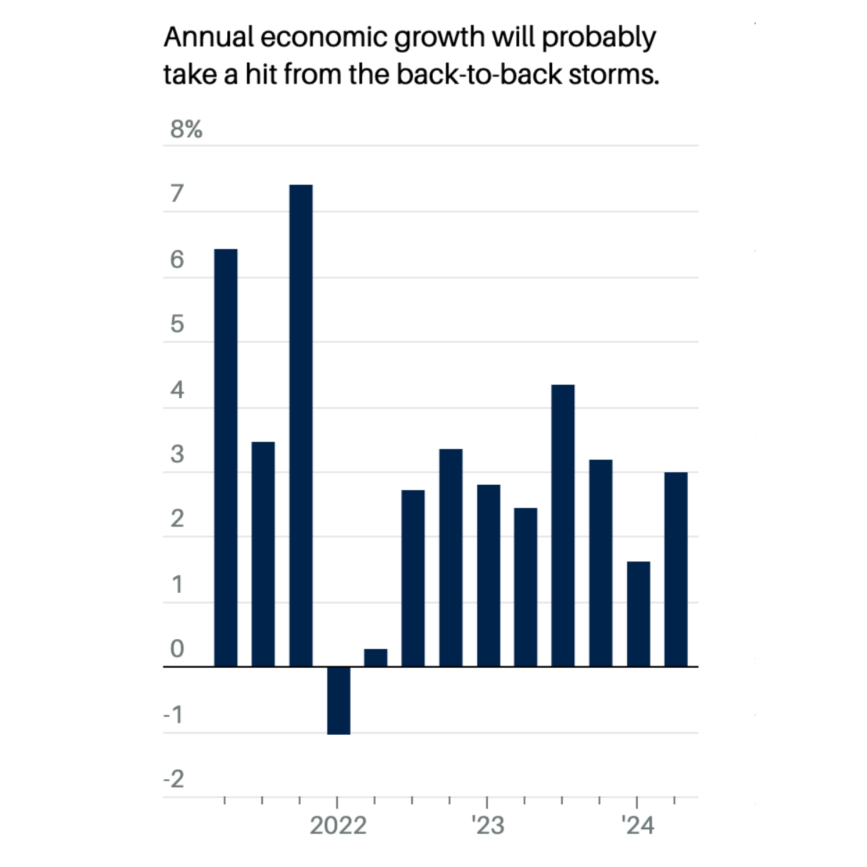 Nedstängda verksamheter och evakuerad arbetskraft väntas även tynga BNP-siffran för fjärde kvartalet. På sikt väntas dock den förlorade produktionen att tas igen, skriver tidningen.