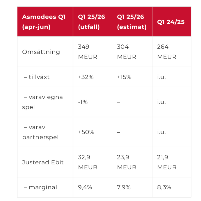 Asmodees rapport för det första kvartalet som löper från april till juni var klart bättre än väntat. Omsättningen steg med 32% och det är återigen partnerspel som står för hela lyftet. Omsättningen för dessa rusade med hela 50% och här ryms en stor affär inom samlarkort (TCG, Trading Card Games) som nu har kraftig medvind. Totalt stod partnerspel för tre fjärdedelar av koncernens intäkter i Q1.