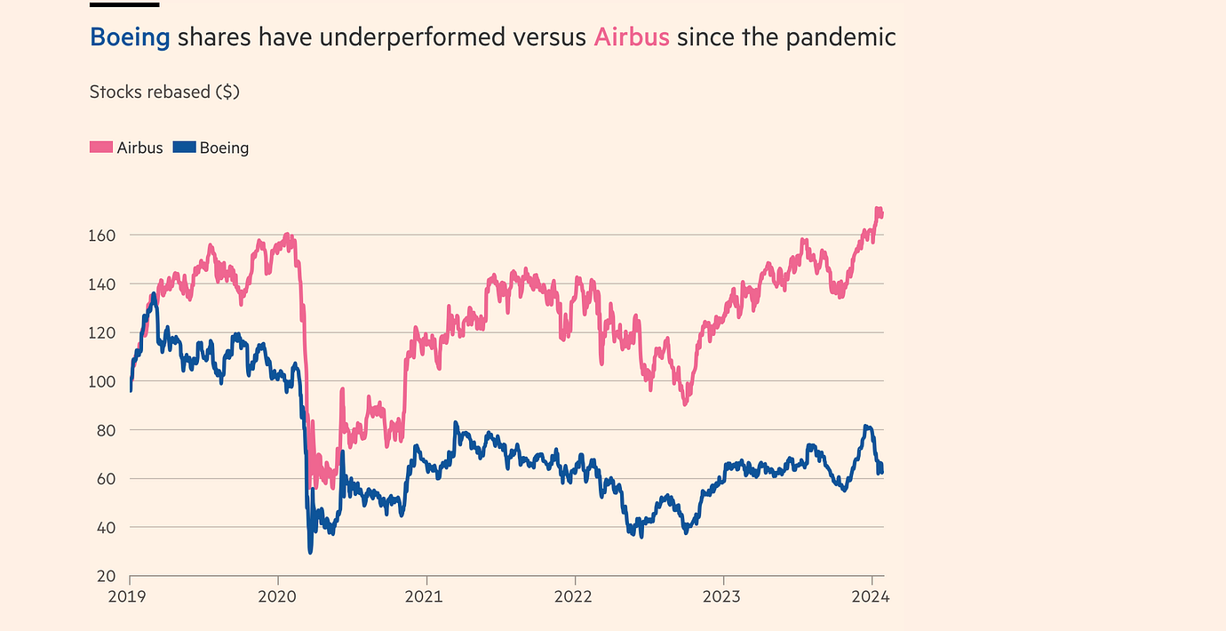 I kölvattnet av Boeings problem har ärkerivalen Airbus tagit marknadsandelar och har nu fulla orderböcker. Kinesiska Comac kan vara ett hopp för att möta marknadens efterfrågan. Men så länge som Kina inte har en helt egen flygindustri konkurrerar tillverkarna om samma underleverantörer, skriver Financial Times.