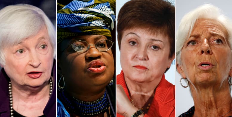 ECB, WTO, IMF och USA:s handels- och finansdepartement har numer en sak gemensamt. Samtliga av de blytunga toppjobben på dessa institutioner innehas av kvinnor.
