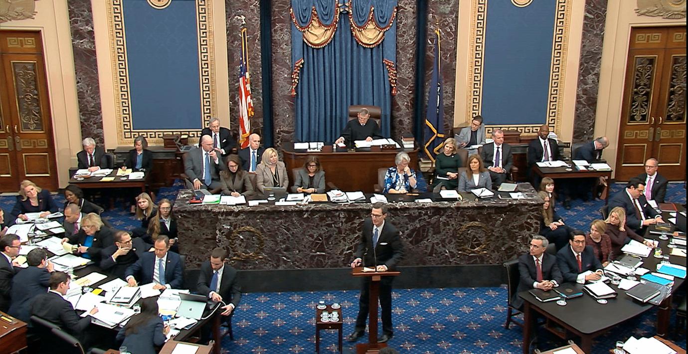 Hårda angrepp från Demokraterna och förlöjliganden från Republikanerna. Så kan den första delen av den historiska riksrättsrättegången mot Donald Trump sammanfattas, skriver TT.