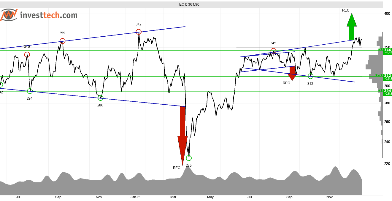 Inför den kommande årsrapporten som förväntas presenteras den 22 januari ser riskkapitalbolaget EQT intressant ut från en teknisk synvinkel. Aktiekursen har under en längre period utvecklats sidledes och det är ett resultat av att marknaden är i balans.