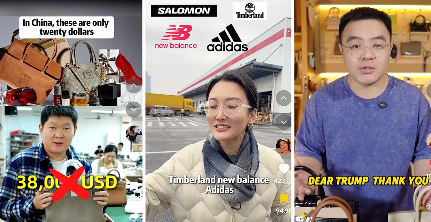 Klippen som nu sprids på både Tiktok och X, är oerhört många. Märken som Hermès, Chanel, Prada och Gucci som vanligtvis gör en poäng av att deras produkter tillverkas i Frankrike eller Italien, pekas ut som lögnare.