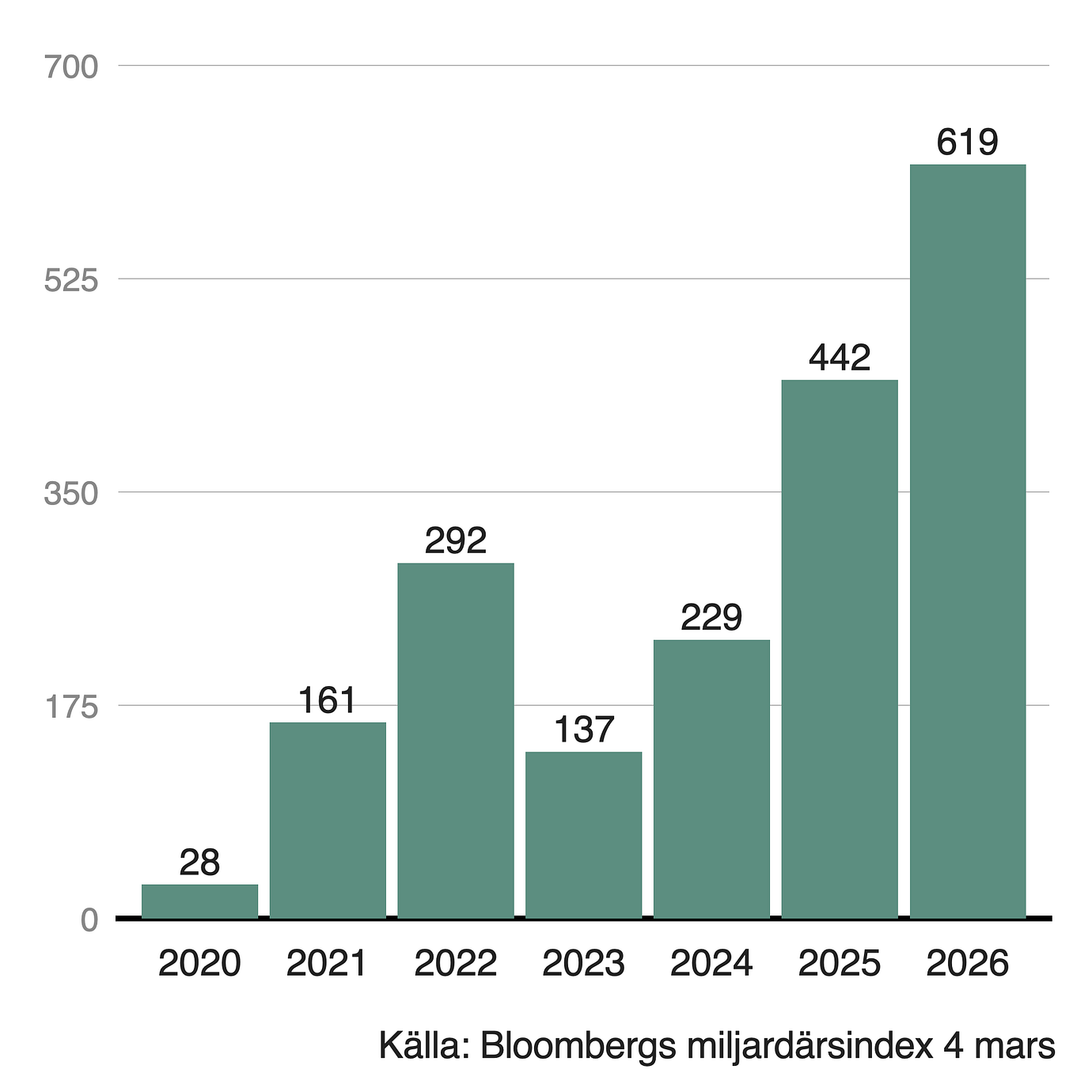 Håller hajpen i sig och växer är det alltså inte otänkbart att Musks förmögenhet kan stiga till över en biljon dollar.