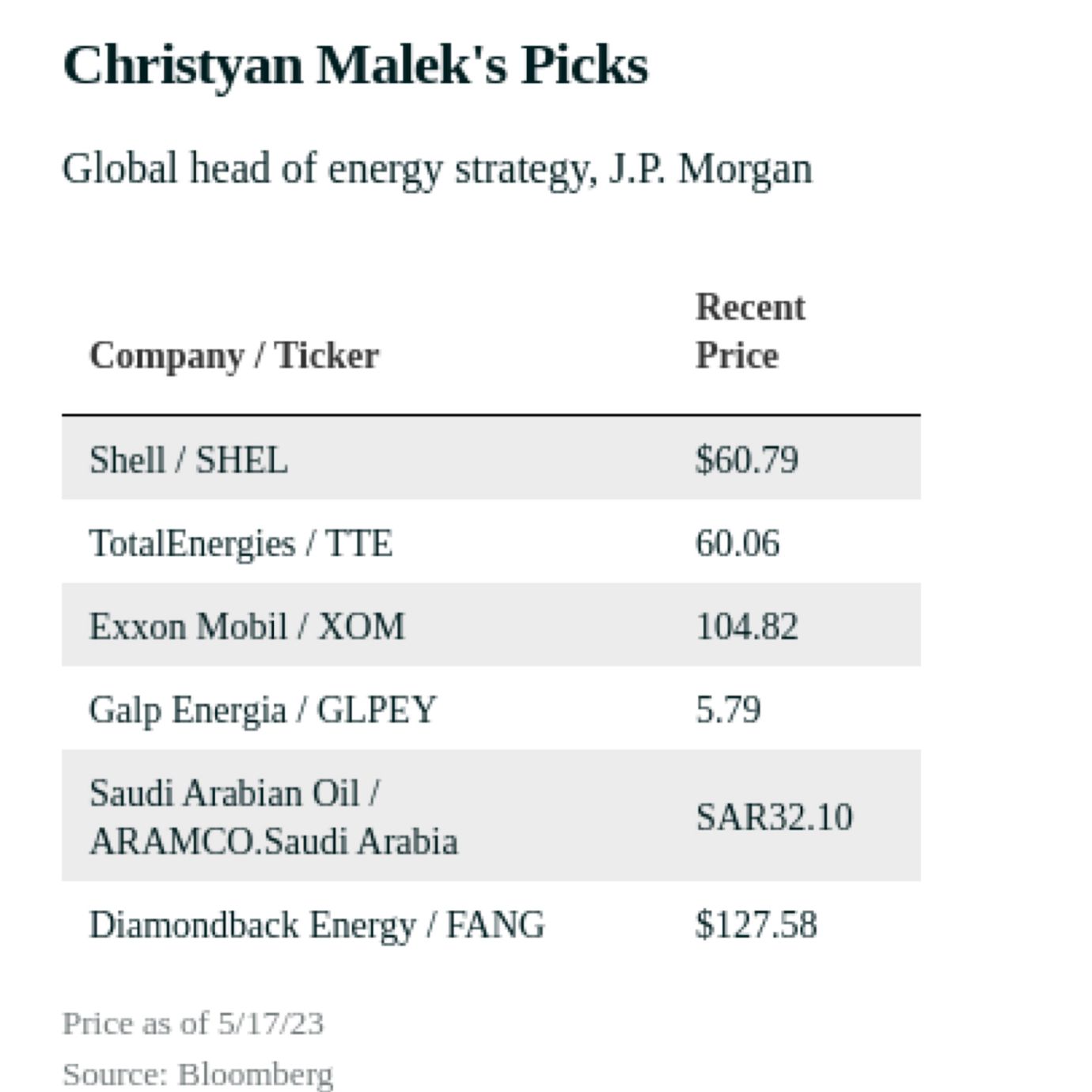 Christyan, you have written positively about some European oil companies. Which do you like now?