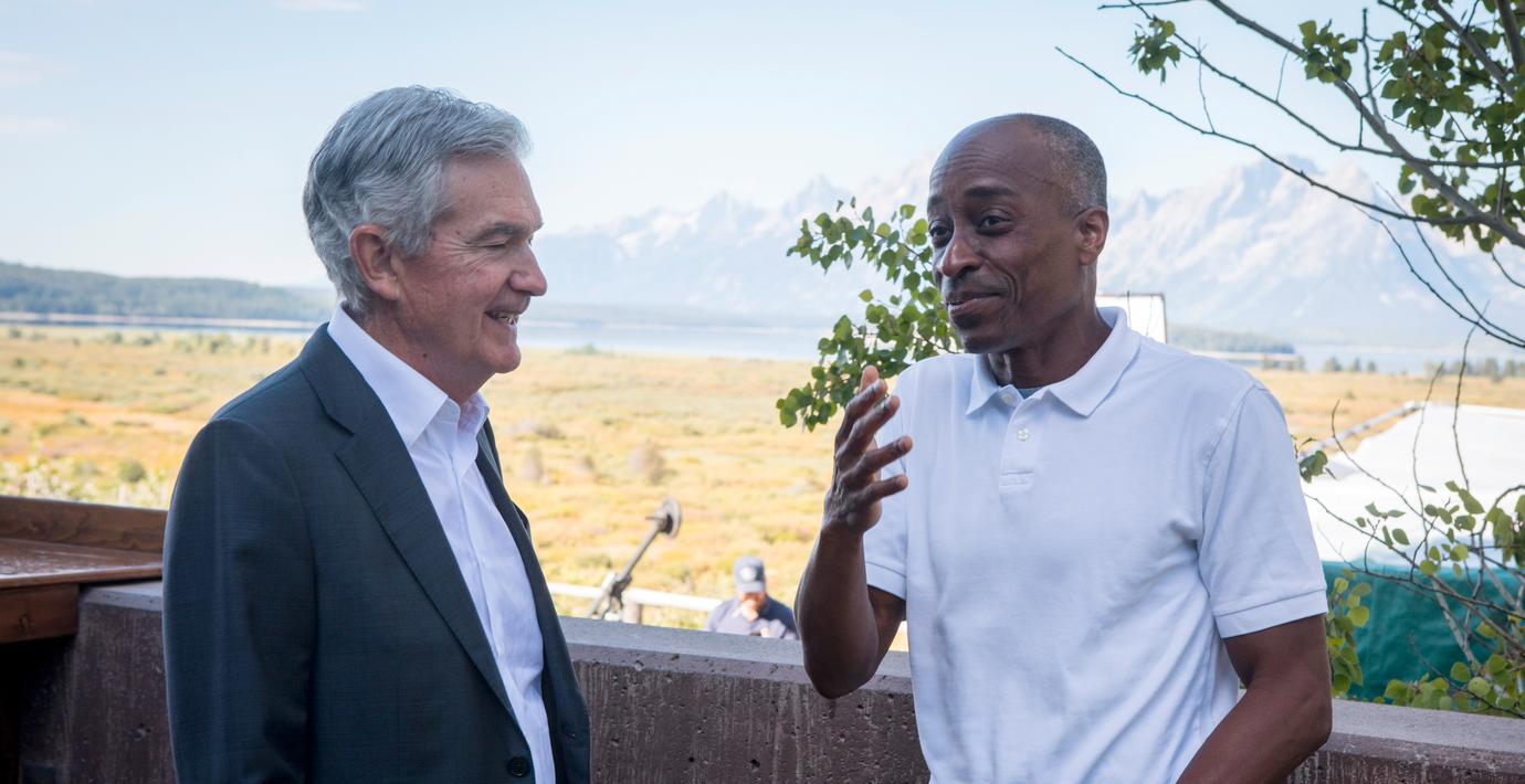 Jerome Powell tillsammans med nationalekonomen Philip Jefferson under förra årets Jackson Hole-konferens (Amber Baesler / AP)