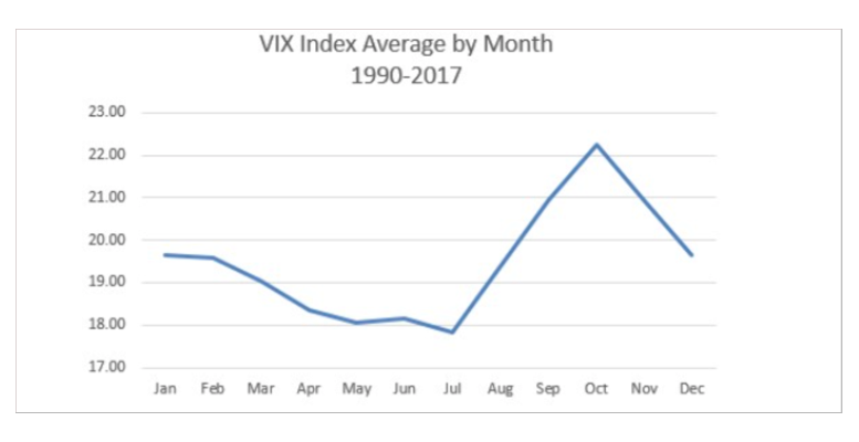 Det är inte det enda skälet till att investerare fasar för månaden. En genomgång av Harvard Business School från 2017, baserat på historiska studier av volatilitetsindexet Vix, visar att oktober varit den mest slagiga tiden på året.