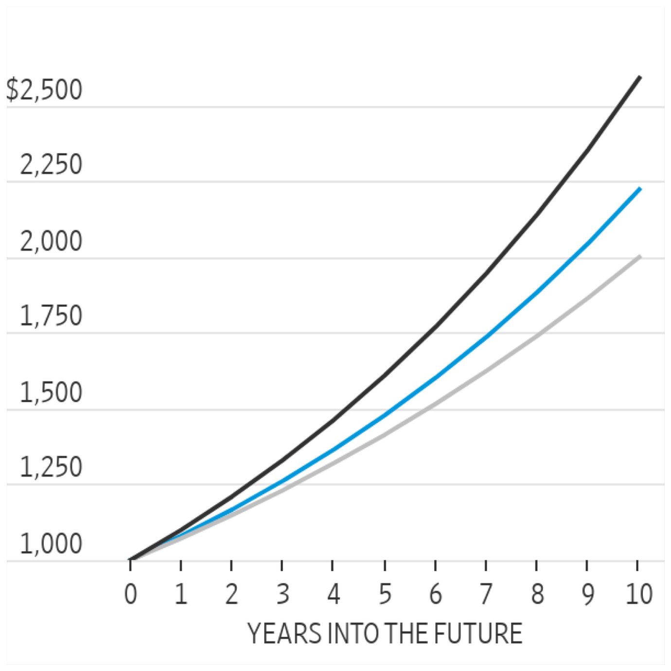 If you unvest $1,000 now, how much will you have in 10 years’ time?