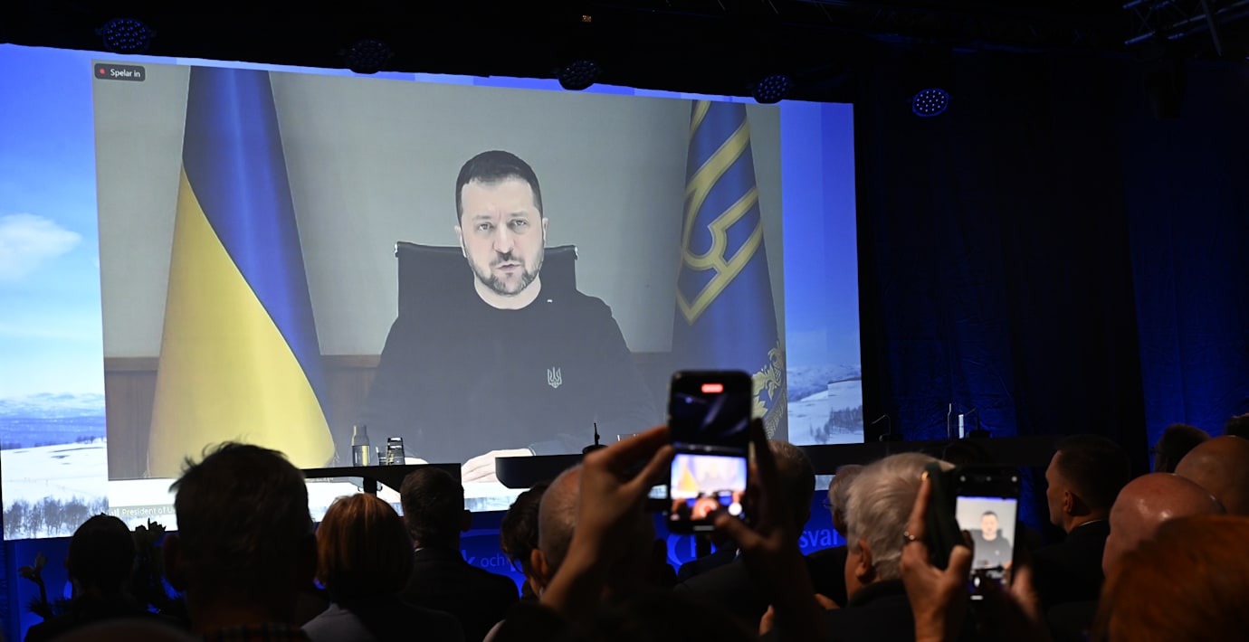 Sveriges solidaritet och stöd har räddat livet på ukrainska soldater, säger Ukrainas president Volodymyr Zelenskyj under ett videosänt tal på Folk och försvar i Sälen.