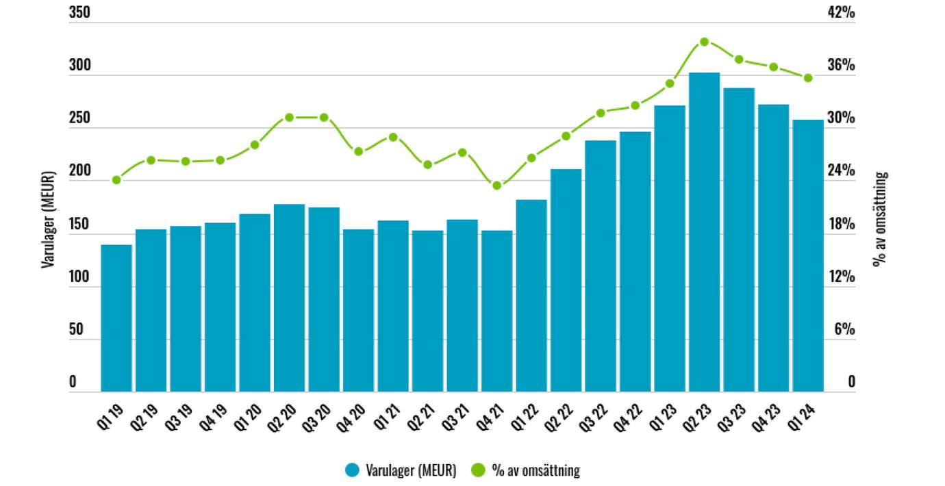 Strulande leveranskedjor fick dock bolaget att mot slutet av 2022 köpa på sig extra stora varulager för att säkra leveransförmågan. Många aktörer på olika håll i värdekedjan agerade dock liknande, och när slutkundsefterfrågan i stället vek blev resultatet stora överskottslager i flera led.