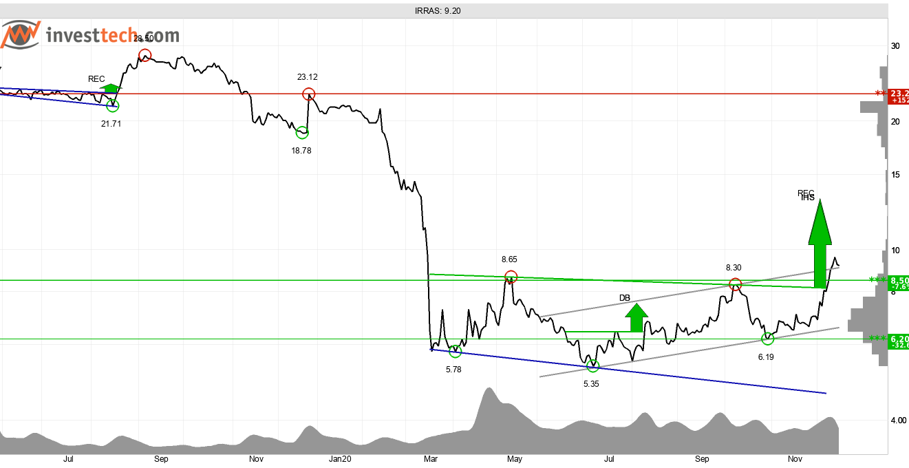 Irras tillhör också skaran aktier som enligt Investtechs statistik överpresterar mot marknaden i anslutning till årsskiftet. Det är små bolag som också har en hög volatilitet. Kombinationen med en positiv teknisk bild gör utsikterna särskilt gynnsamma.