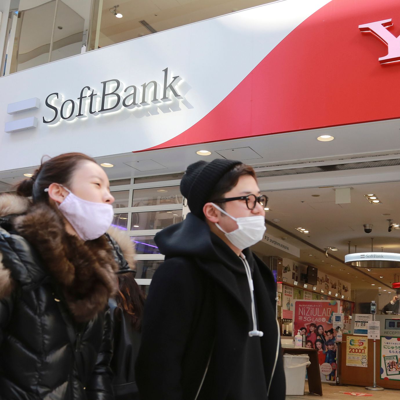 People walk by a SoftBank shop in Tokyo, Monday, Feb. 7, 2022. (Koji Sasahara / AP)