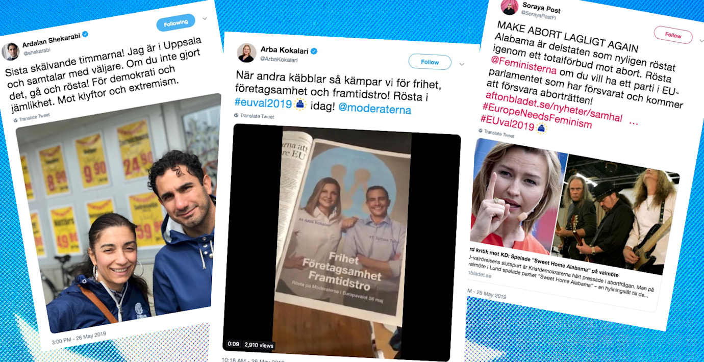 Det är bara timmar kvar till vallokalerna stänger och på Twitter är flera toppolitiker och EU-kandidater ute och försöker påverka väljarna in i det sista.