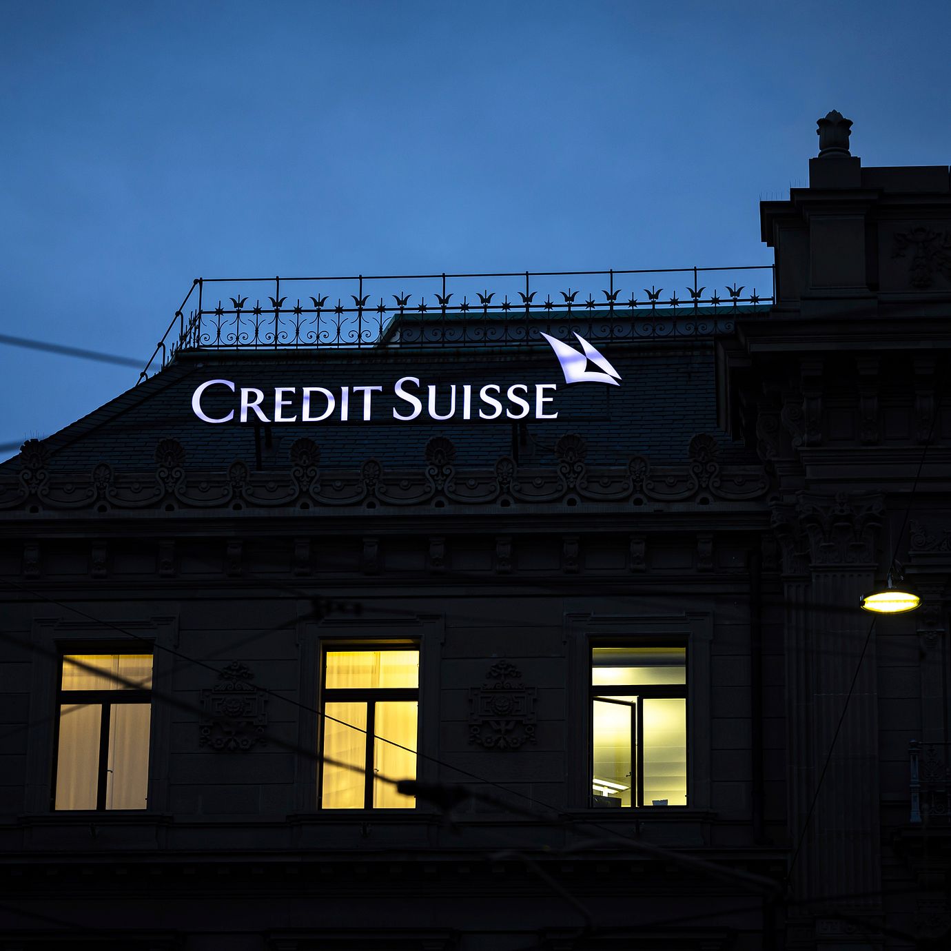 The logo of the Swiss bank Credit Suisse is seen at the banks headquarters entrance at Paradeplatz in Zurich, Switzerland on Sunday March 19, 2023.  (Michael Buholzer / AP)