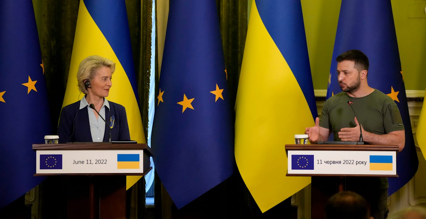 I slutet av nästa vecka kan EU fatta beslut om eventuell kandidatstatus för Ukraina. Det sa EU-kommissionens ordförande Ursula von der Leyen på en presskonferens efter ett oannonse…