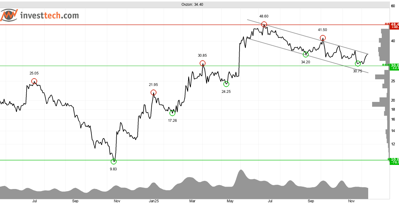 Observera hög risk. Brott ned genom 30 kronor skulle utlösa säljsignal.