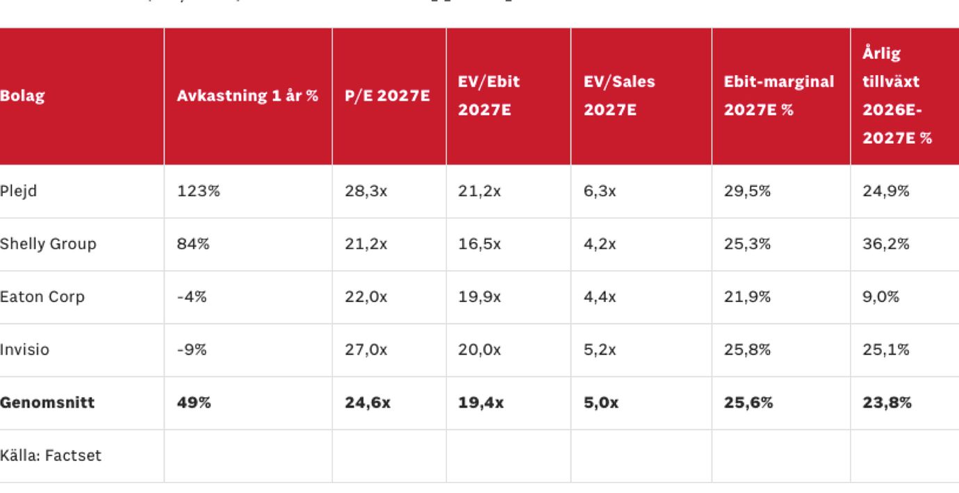 Plejd har ett starkt operativt momentum. För 2026 skissar vi på 30% tillväxt, till följd av fortsatta framgångar i både Sverige och Norge samt att de mindre tillväxtmarknaderna fortsätter växa till sig. Kommande år räknar vi med runt 20% årlig tillväxt.