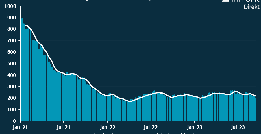 Fyraveckorssnittet sjönk till 216.750 jämfört med 224.500 veckan före.