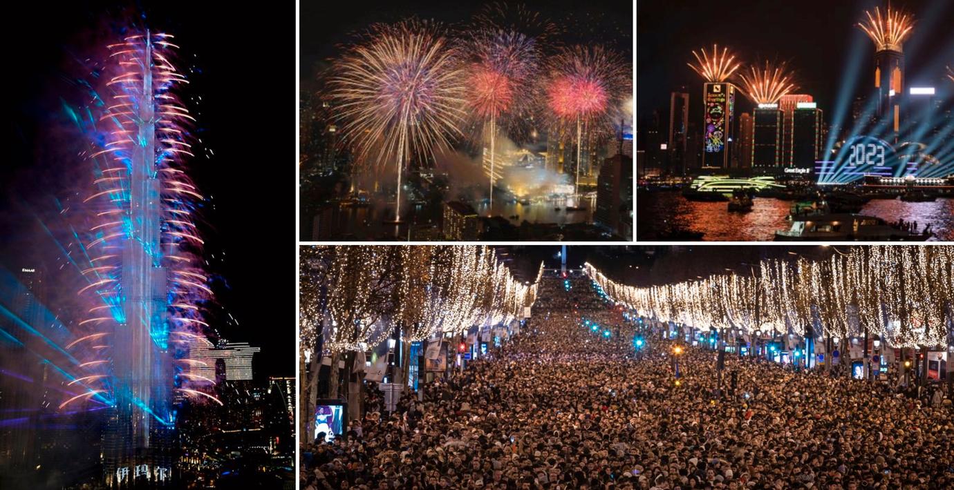 Efter två år av nedtonat nyårsfirande i skuggan av pandemin välkomnades 2023 med folkfest och fyrverkerier världen över.